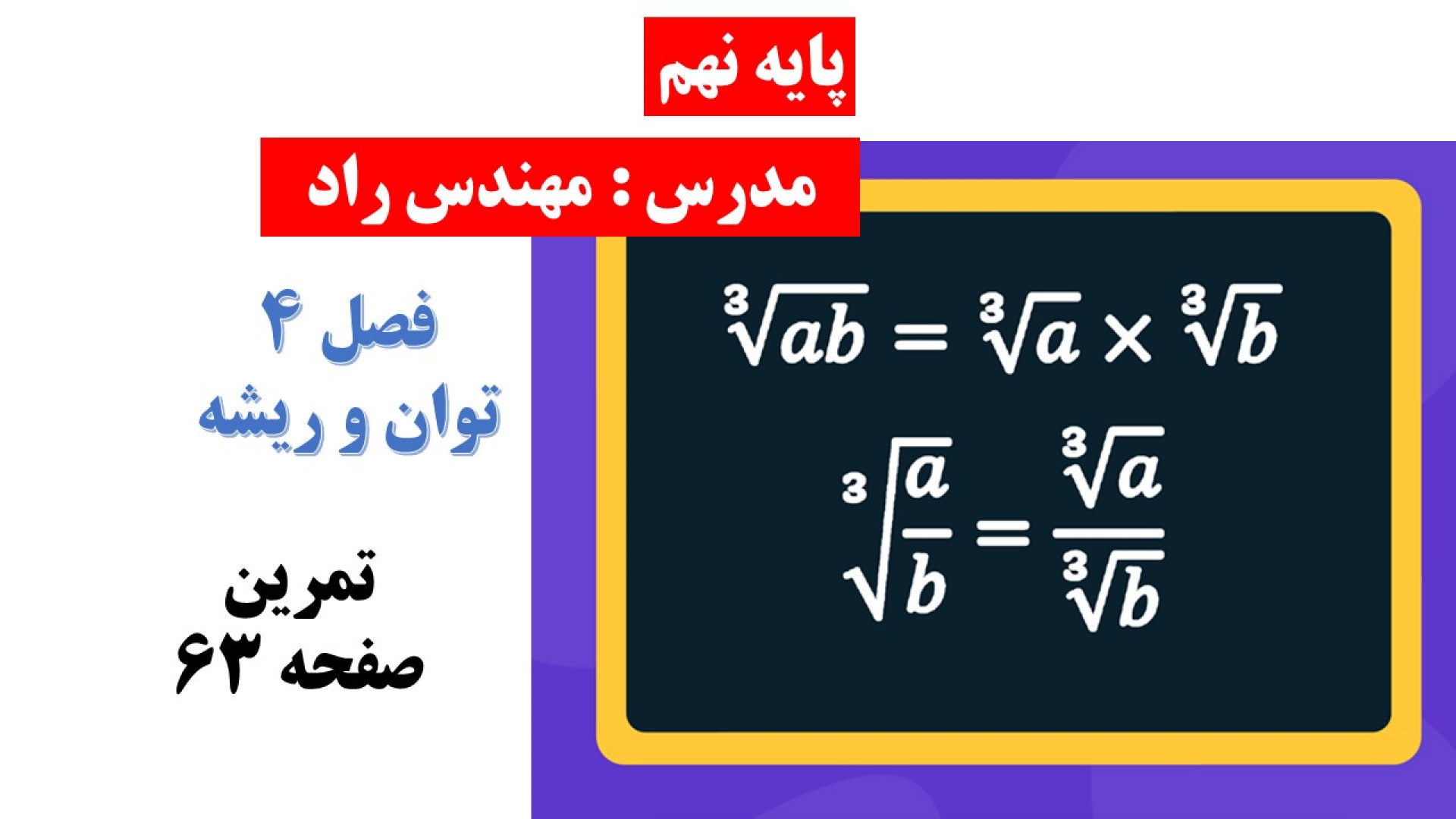 Машқҳои саҳифаи 63 фасли 4 қувва ва реша синфи нӯҳум