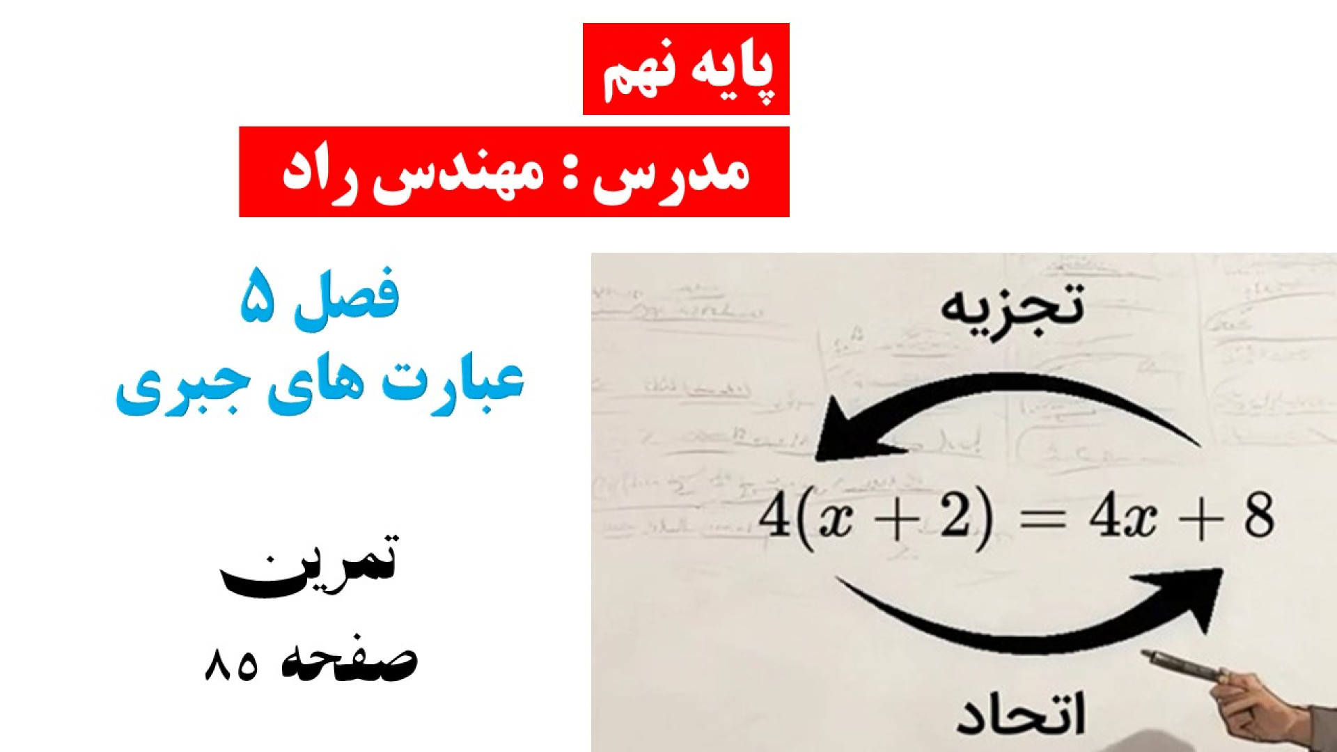 Машқҳои саҳифаи 85 фасли 5 ибораи ҷабрӣ синфи 9