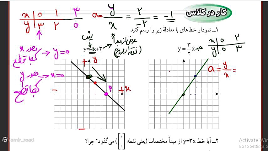Кор дар синф саҳифаи 99 фасли 6 хат ва муодилаҳои хатӣ синфи нӯҳум