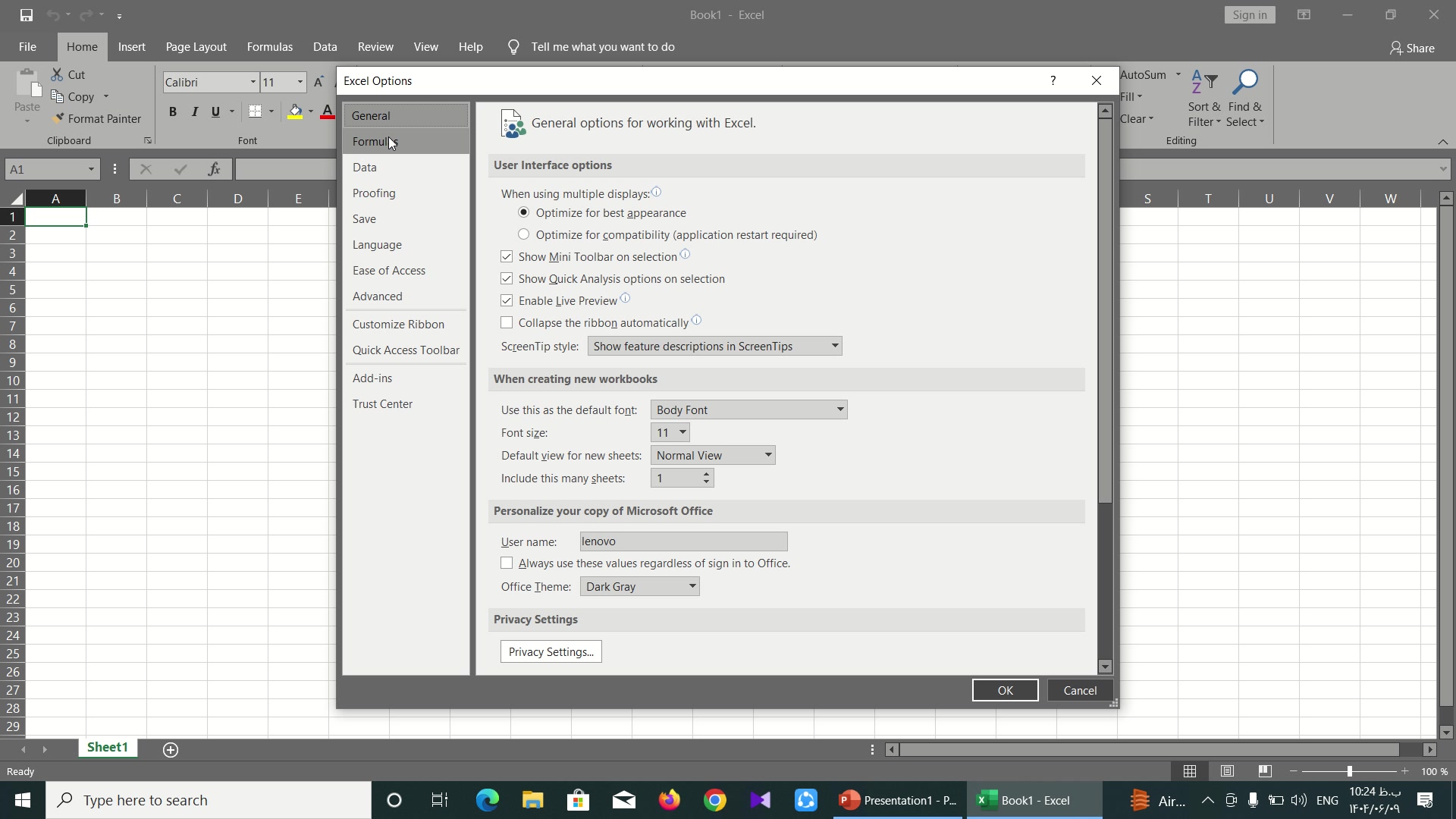 Танзимоти аввалияи Excel