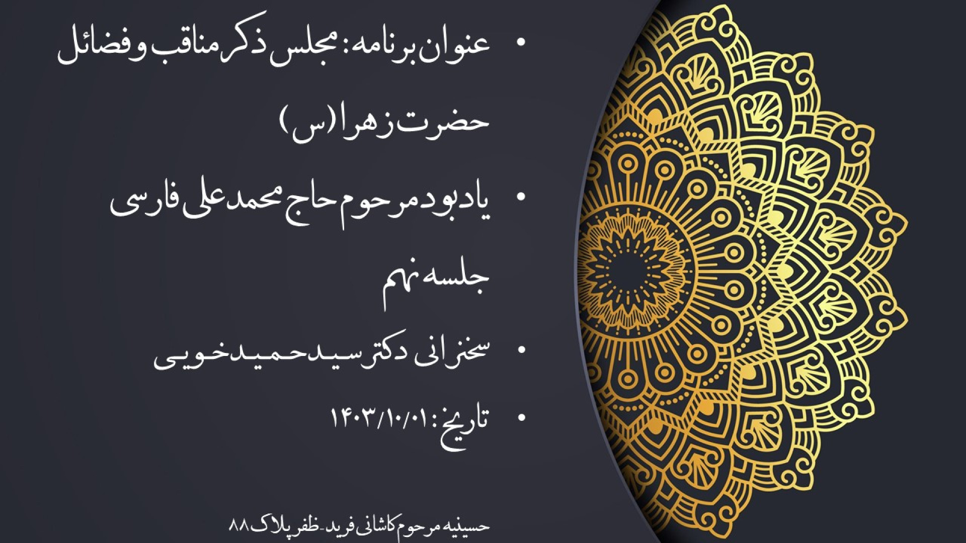 Маъруза дар бораи фазилатҳои ҳазрати Фотима (с) - Доктор Сайид Ҳамид Хӯӣ - 1403/09/26