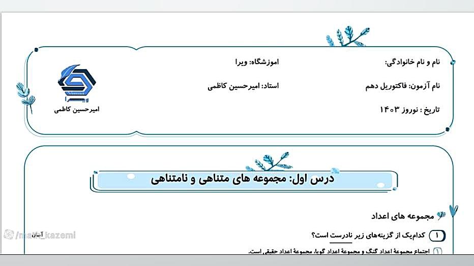 хулосаи фасли якуми математикаи синфи 9