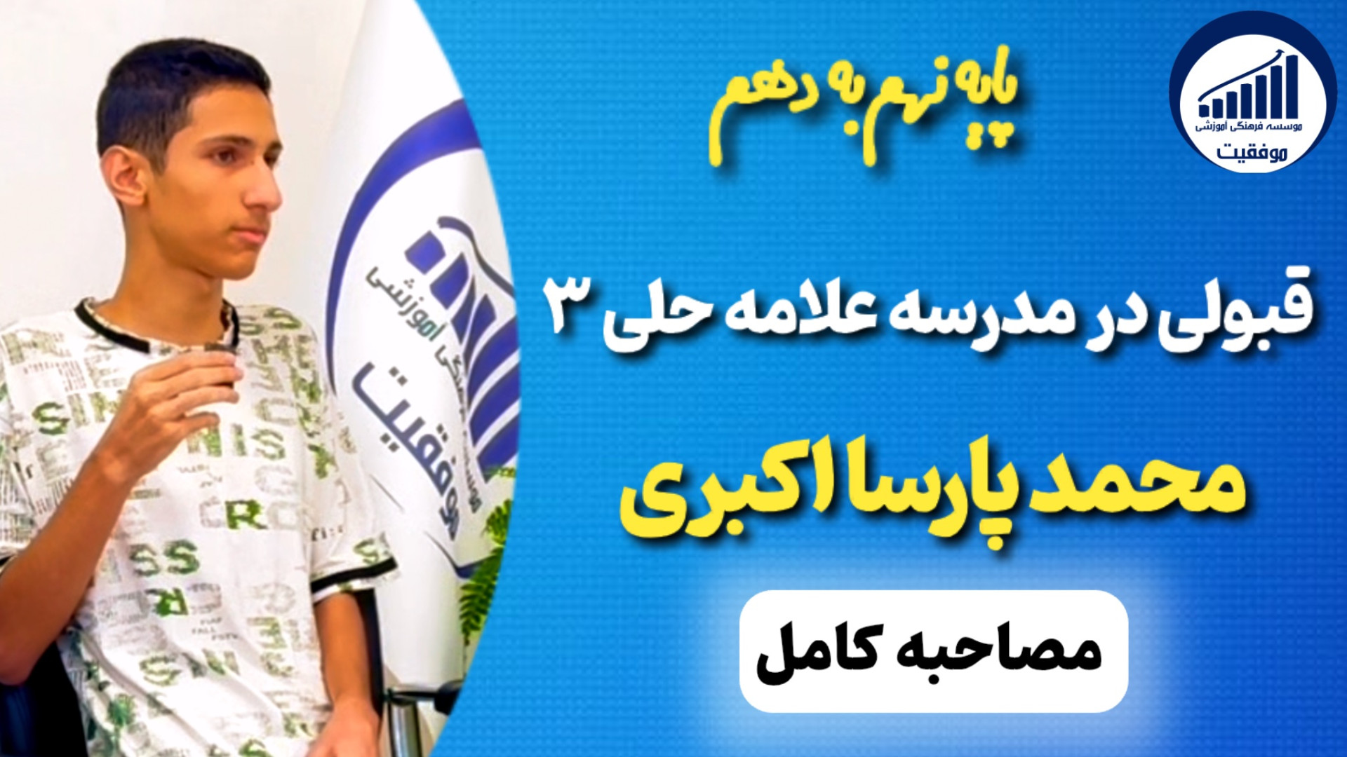 Дар ин видео, бо Муҳаммад Парса Акбарӣ, ки яке аз донишҷӯёни муваффақи Аламма Ҳаллии 3 аст, мусоҳиба мекунем. Ӯ аз таҷрибаҳояш дар қабули синфи 9 ба 10 мегӯяд ва маслиҳатҳои ҷолибе барои муваффақ шудан дар ин раванд медиҳад. Агар хоҳиш доред, ки ба монанди ӯ муваффақ шавед, ин видеоро тамошо кунед ва аз маслиҳатҳои Муҳаммад Парса баҳра баред!