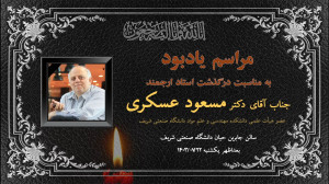 Пайвандӣ ба ёдбуди доктор Масъуд Аскарӣ дар Донишгоҳи саноатии Шариф. Ин чорабинӣ як имконияти беҳамто барои дидан ва шиносоӣ бо кору фаъолияти донишманди бузург аст. Шумо метавонед дар ин чорабинӣ иштирок карда, аз дониш ва таҷрибаи ӯ илҳом бигиред.