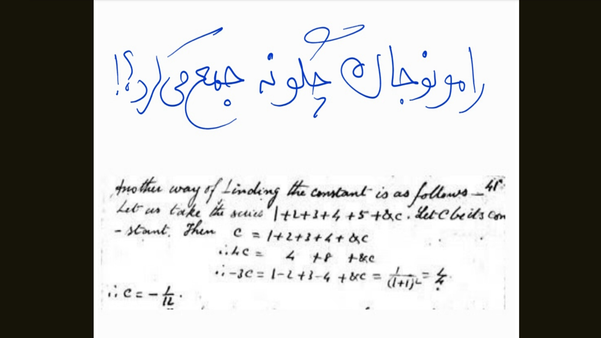 Дар ин видео, мо ба ҷаҳони аҷиби математика ворид мешавем ва бо Рамонужан, ки савори риштаи беохир аст, шинос мешавем. Оё шумо ҳамеша фикр мекардед, ки ҷамъи ададҳои табиӣ чӣ гуна мешавад? Ин видеоро тамошо кунед, то ҷавоби ин саволи аҷибро дарёфт кунед! Ба мо ҳамроҳ шавед ва ба кашфиёти нав дар математика омода бошед!