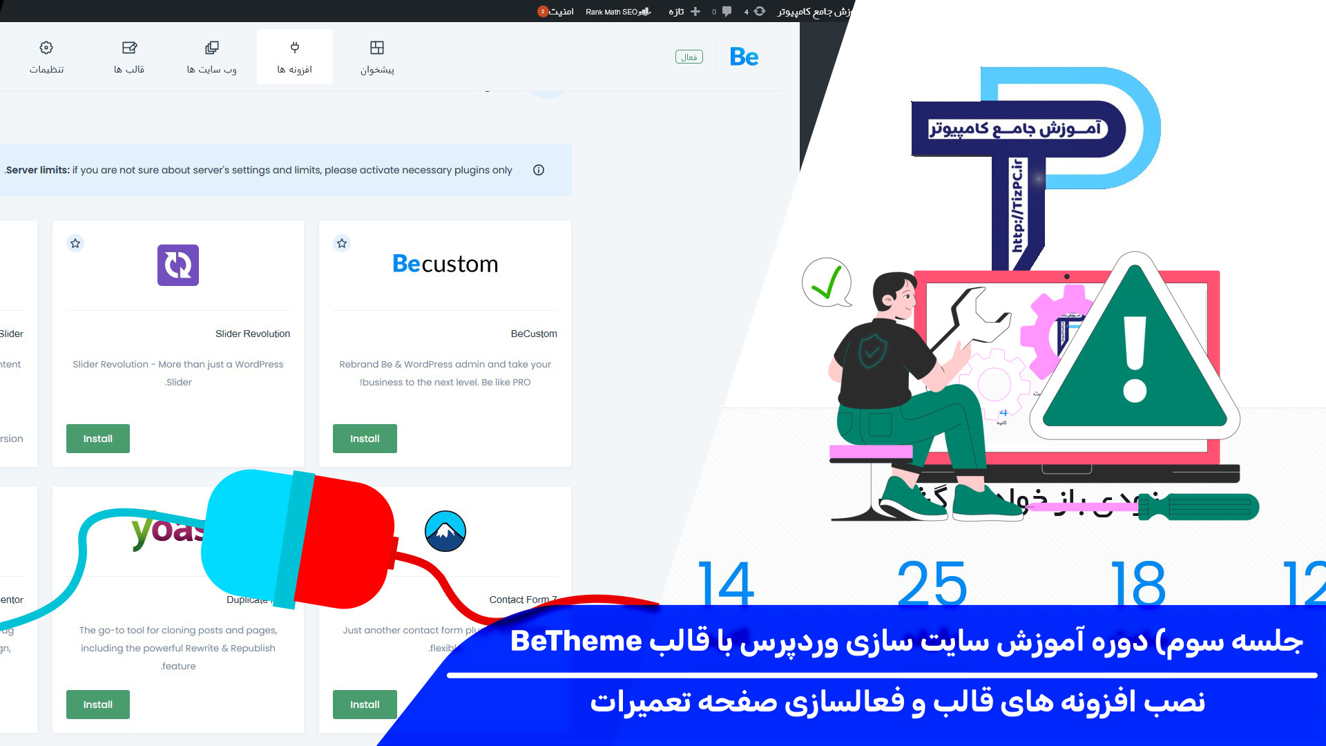 Дар дарси чоруми омӯзиши WordPress бо қолаби BeTheme, мо ба шумо нишон медиҳем, ки чӣ тавр плагинҳоро насб карда, саҳифаи таъмиротро фаъол кунед. Ин дарс барои касоне, ки мехоҳанд сайти худро ба таври касбӣ ва бидуни таъмирот нигоҳ доранд, ниҳоят муфид аст. Аз даст надиҳед - бо мо бимонед ва тамоми дониши лозимаро барои рушди сайти худ ба даст оред!