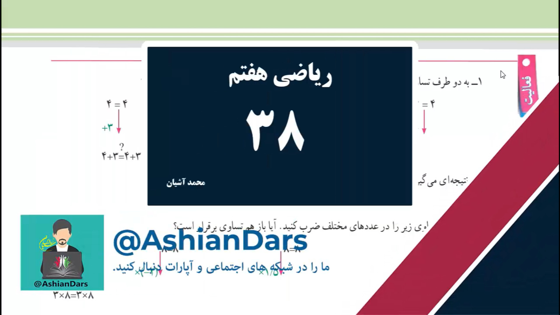 Дар ин видео мо якҷоя саҳифаи 38 аз китоби риёзии синфи 7-ро меомӯзем! Фасли 3 ба мо имконият медиҳад, ки бо дарсҳои ҷолиб ва шавқовар шинос шавем. Ҳарфҳо ва мисолҳои муфидро фаромӯш накунед! Барои фаҳмиши беҳтар ва ба даст овардани балҳои баланд дар имтиҳонҳо, ин видеоро тамошо кунед.