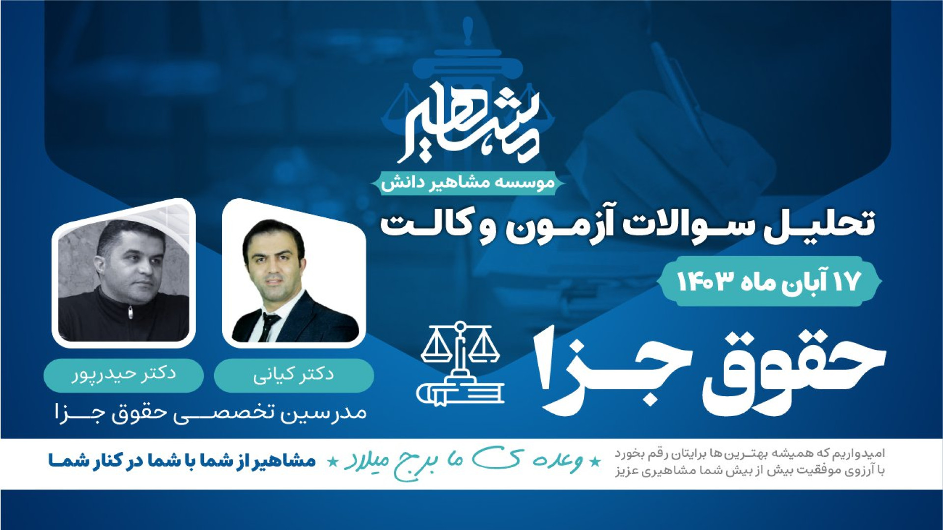 Дар ин видео, мо ба таҳлили пурраи саволҳои ҳуқуқи ҷазо барои имтиҳони адвокатӣ 403 бо Доктор Киёни ва Доктор Ҳайдарпур мепардозем. Агар шумо хоҳед, ки дар имтиҳони адвокатӣ комёб шавед, ин видео барои шумо як манбаи муҳим хоҳад буд. Ҳар саволро бодиққат баррасӣ мекунем ва ҷавобҳои дурустро пешниҳод менамоем. Бояд дар назар дошта бошед, ки донистани ҳуқуқи ҷазо яке аз асосҳои муҳими имтиҳон аст. Ба мо ҳамроҳ шавед ва ҳамаи саволҳои худро ҳал кунед!