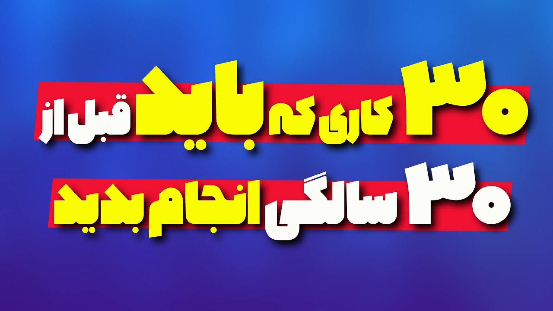 Дар ин видео мо 30 кореро баррасӣ мекунем, ки пеш аз расидан ба 30-солагӣ бояд анҷом диҳед. Ин феҳрист ба шумо кӯмак мекунад, ки зиндагии худро бо комёбӣ, ҳадафмандӣ ва хушбахтӣ пеш баред. Аз рушди шахсӣ то ноил шудан ба ҳадафҳои бузург, ин видеоро тамошо кунед ва ба фоидаҳои беназири он дастрас шавед.