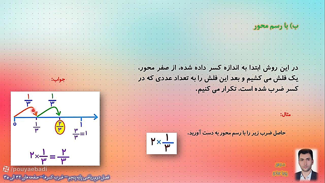 Дар ин видео мо бо Ҳомид Ганҷи ба саҳифаи 38 китоби риёзии синфи чорум назар мекунем ва меомӯзем, ки чӣ гуна ададро ба каср зарб кунем. Ин усули муҳимро бо мисолҳои оддӣ шарҳ медиҳем, то хонандагони синфи чорум онро ба осонӣ фаҳманд. Бо мо бимонед барои маълумоти бештар ва машқҳои ҷолиб!