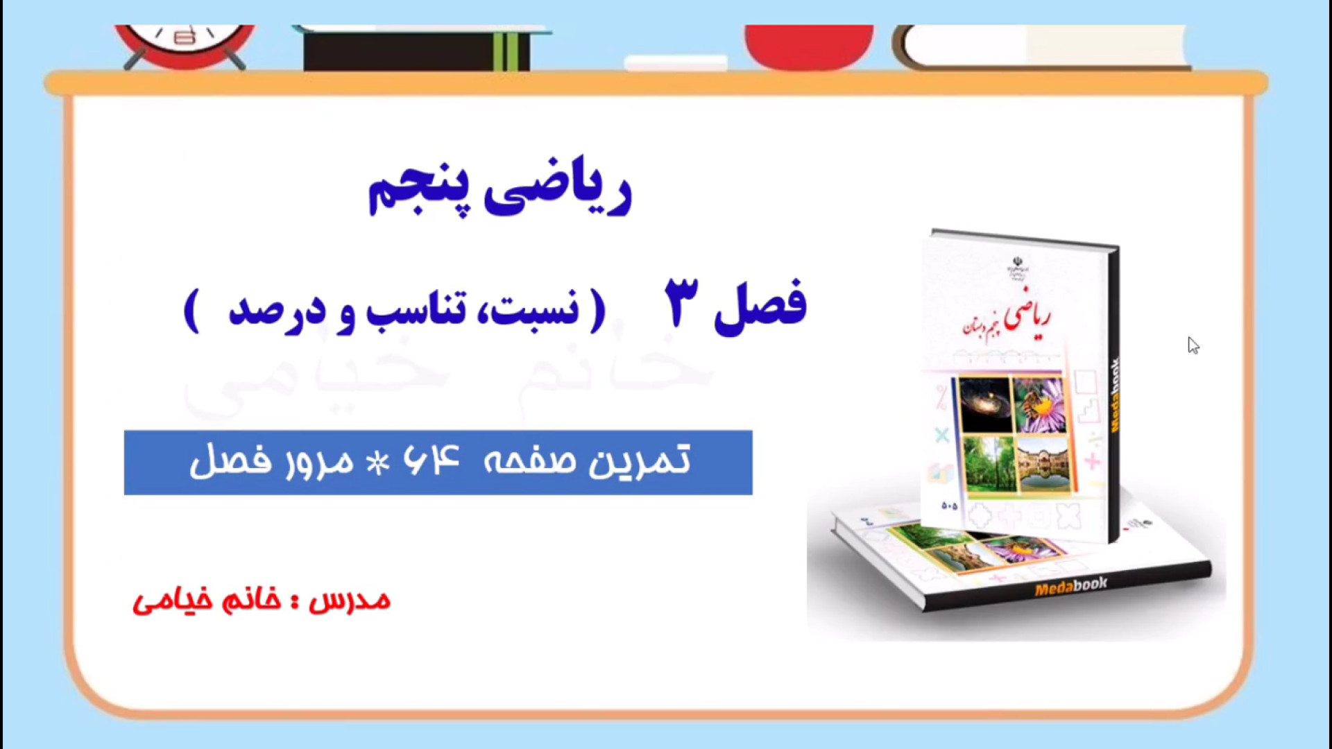 Омӯхтани риёзи бо шавқ! Дар ин видео машқҳои такрории фасли 3-и риёзи синфи 5-ро бо хонум Хиёми мегузаронем. Саҳифаҳои 64 ва 65-ро якҷоя дида мебароем. Биёед, бо ҳам омӯзем ва саводамонро такмил диҳем! Ҳоло пайваст шавед ва саволҳои худро бо мо дар миён гузоред.