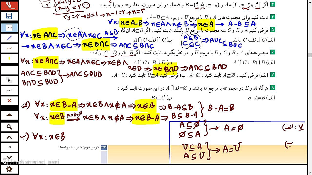 Дар ин видео, мо машқҳои саҳифаҳои 33 ва 34-и китобро, ки бо омори эҳтимол ва алгебраи маҷмӯаҳо сарукор доранд, ҳал мекунем. Агар шумо ҳамеша дар ин мавзӯъҳо мушкилот доштед, ин видео барои фаҳмиши беҳтари шумо кӯмак мекунад. Қадам ба қадам, мо ба шумо нишон медиҳем, ки чӣ тавр ба ин мушкилот наздик шудан лозим аст. Бо мо ҳамроҳ шавед ва дониши худро афзун кунед!