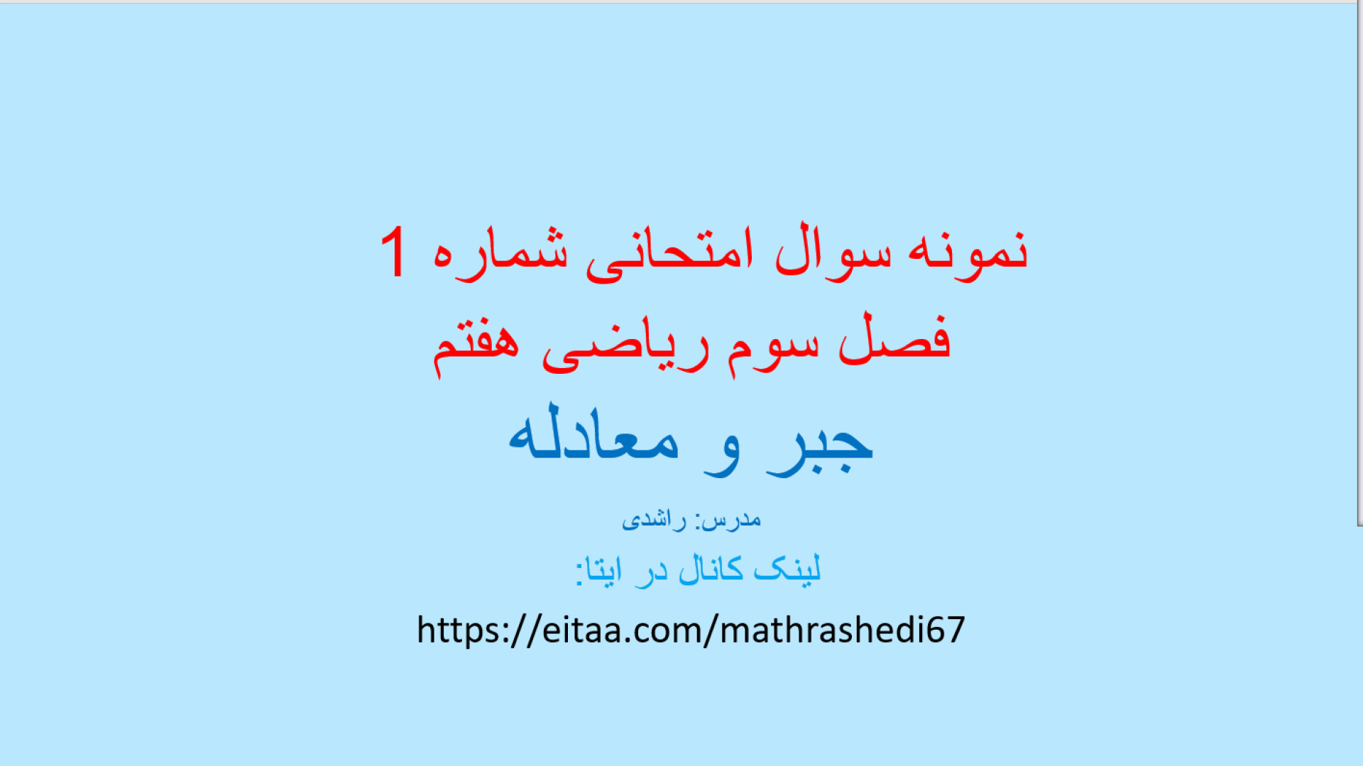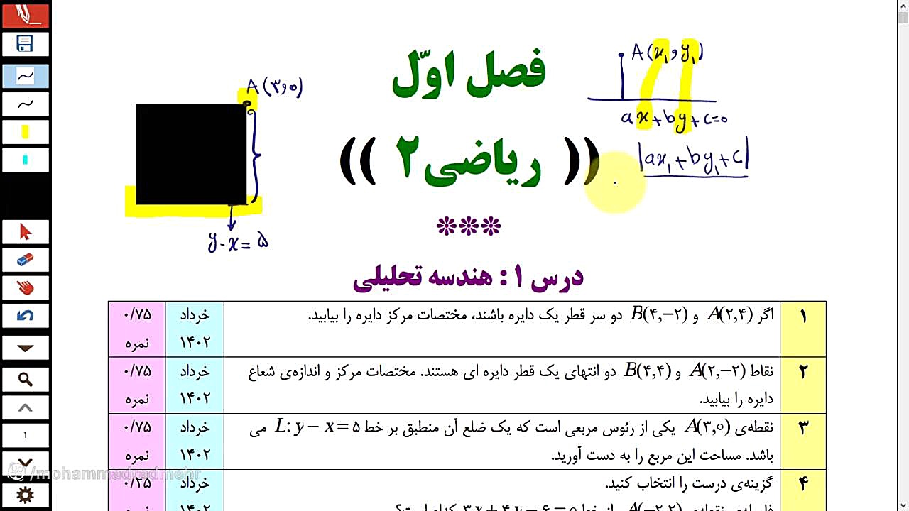 Дар ин видео мо ба ҳалли саволҳои ниҳоии солҳои 1402 ва 1403 аз фасли аввали риёзии синфи 11 таҷрибӣ мепардозем. Бо мо бошед, то ба осонӣ саволҳои душворро ҳал кунед ва ба натиҷаҳои беҳтарин ноил шавед. Аз ин фурсат истифода баред ва дониши худро такмил диҳед!