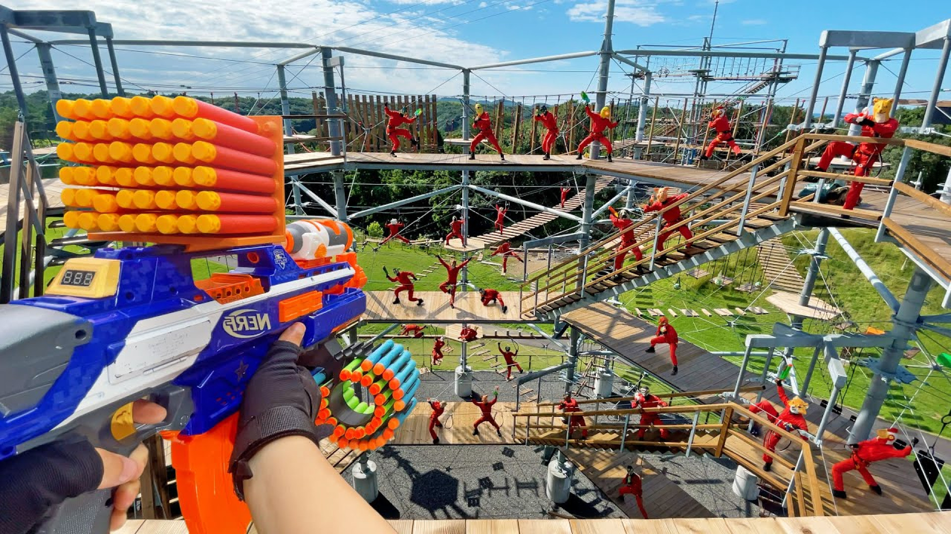 Ҳангомаи ҷанг бо таппончаҳои бозича дар боғи дилхушӣ! Биёед ҳамроҳ шавем ва дар ин ҳарби ҳаяҷонбахш, ки бо дӯстон дар боғи дилхушӣ дорем, иштирок кунем. Аз таппончаҳои Нерф ба таври ҳирфаӣ истифода мекунем ва барои пирӯзӣ мубориза мебарем. Ин як шавқоварӣ ва таҷрибаи нодир аст, ки набояд аз даст диҳед!