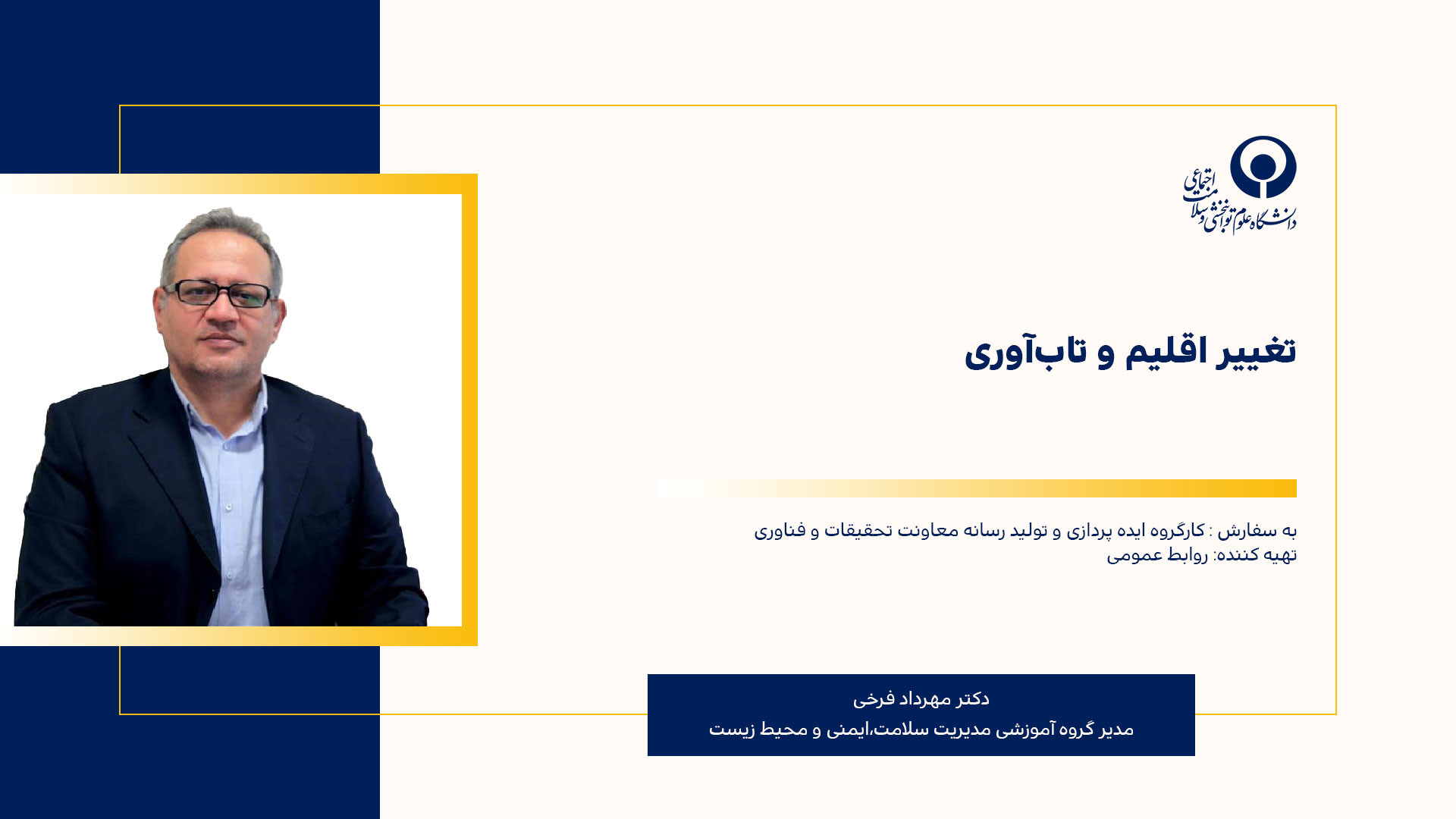 Дар ин видео мо ба мавзӯи тағйири иқлим, саноат ва сиёсати ихроҷи газҳои гулхонаӣ дар Эрон назар меандозем. Бо мо ҳамроҳ шавед то дар бораи таъсири ин масъалаҳо ва роҳҳои ҳалли онҳо маълумоти бештар гиред. Ин вохӯрии онлайнии ҷолиб ва муфидро аз даст надиҳед!