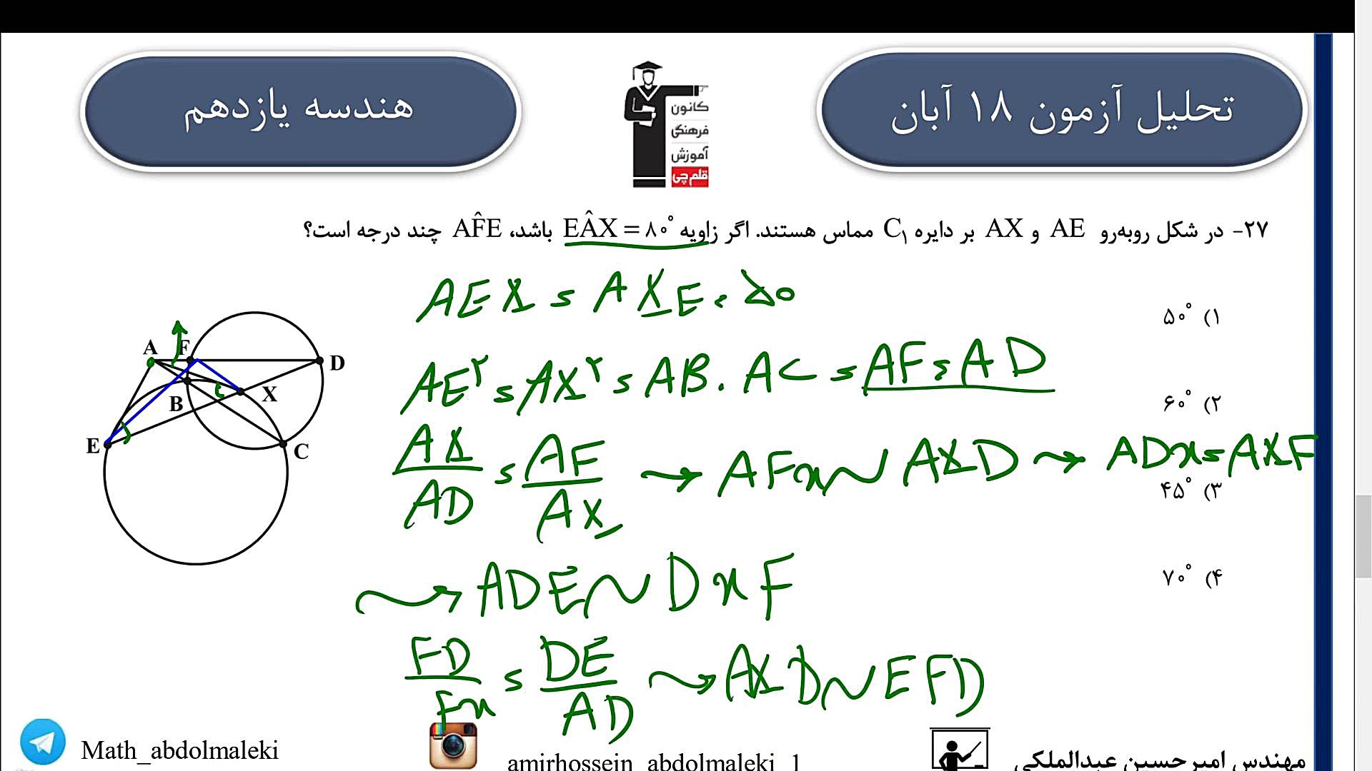 Дӯстони азиз! Дар ин видео мо ба таҳлили пурра ва муфассали имтиҳони Қаламчи аз 18 Обон 1403 барои фанни ҳандасаи синфи ёздаҳум хоҳем пардохт. Агар шумо ҳам мехоҳед дар ин фан ба муваффақият бирасед ва ба суолҳои имтиҳонӣ дуруст ҷавоб диҳед, ин видео барои шумо як фурсатест беҳтарин! Ҳамаи масоили муҳимро баррасӣ мекунем ва ба саволҳои шумо ҷавоб медиҳем. Пас, тамошо кунед ва шарҳ диҳед!