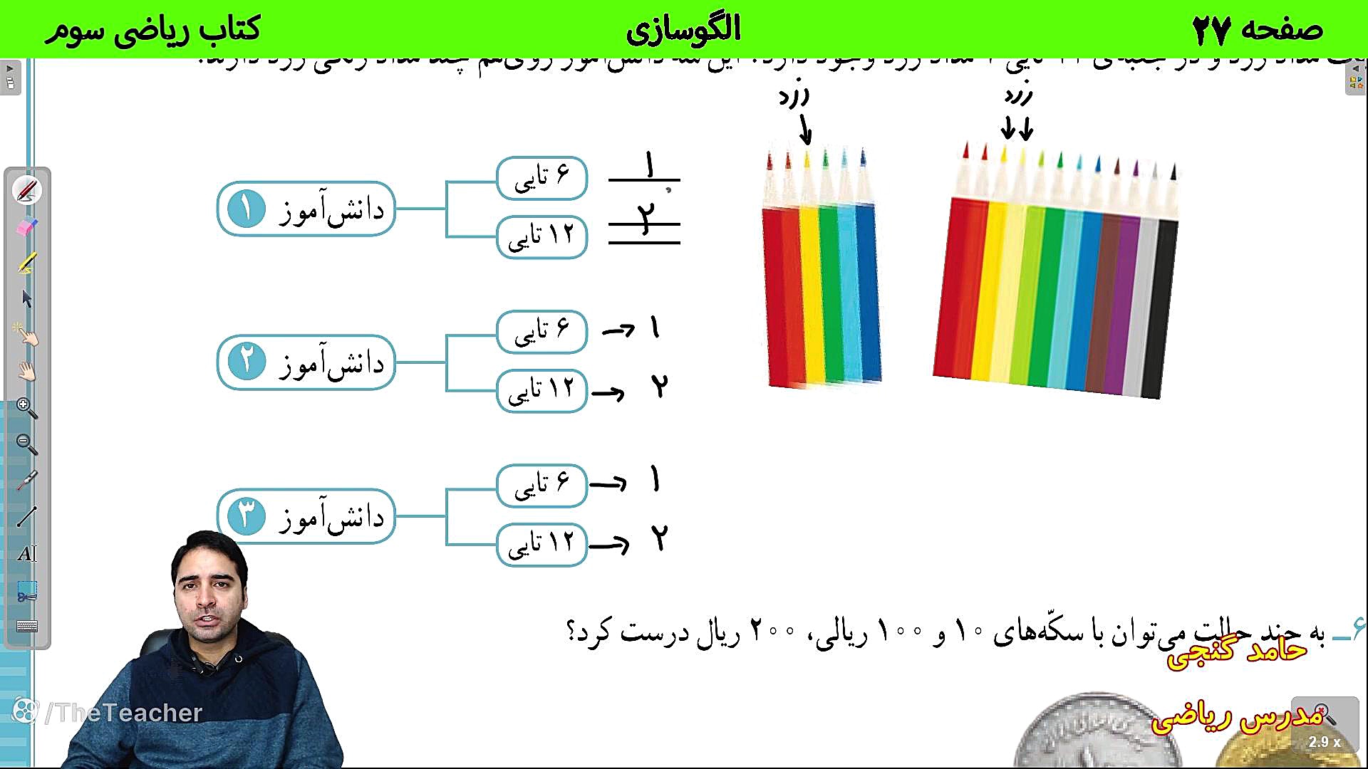 Дар ин видео, мо ба саҳифаи 27 китоби математикаи синфи сеюм назар мекунем, ки дар он алгосозӣ шарҳ дода мешавад. Ҳамроҳ бо Ҳомид Гандҷи, мо мефаҳмем, ки чӣ гуна алгосозӣ метавонад ба дарки беҳтари мавзӯъҳои математикӣ кӯмак кунад. Тамошо кунед ва дарсҳои ҷолибро аз даст надиҳед!