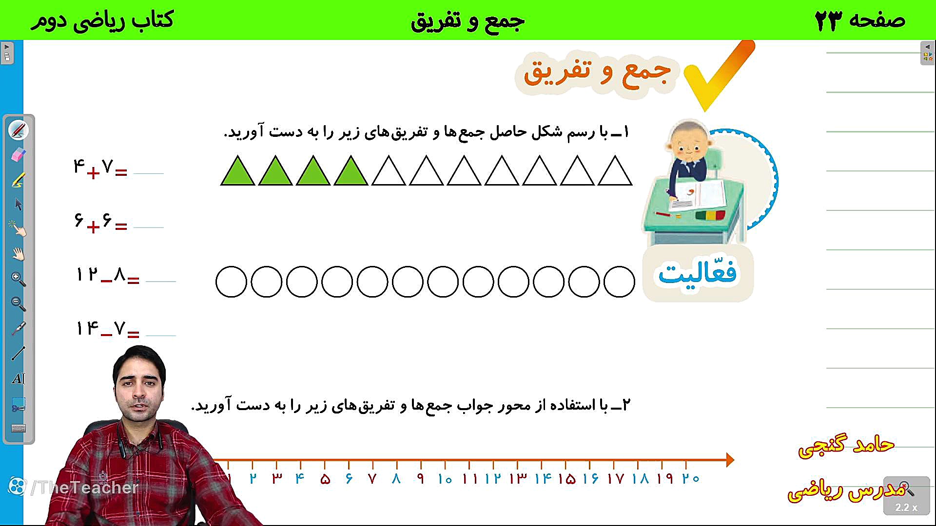 Дар ин видео, омӯзиши саҳифаи 23 аз китоби риёзии синфи 2-ро бо Ҳомид Гаҷнӣ тамошо кунед. Мо бо усулҳои осони ҷамъ ва тарҳ шинос хоҳем шуд. Агар мехоҳед дарси риёзии худро беҳтар кунед, ин видеоро аз даст надиҳед!