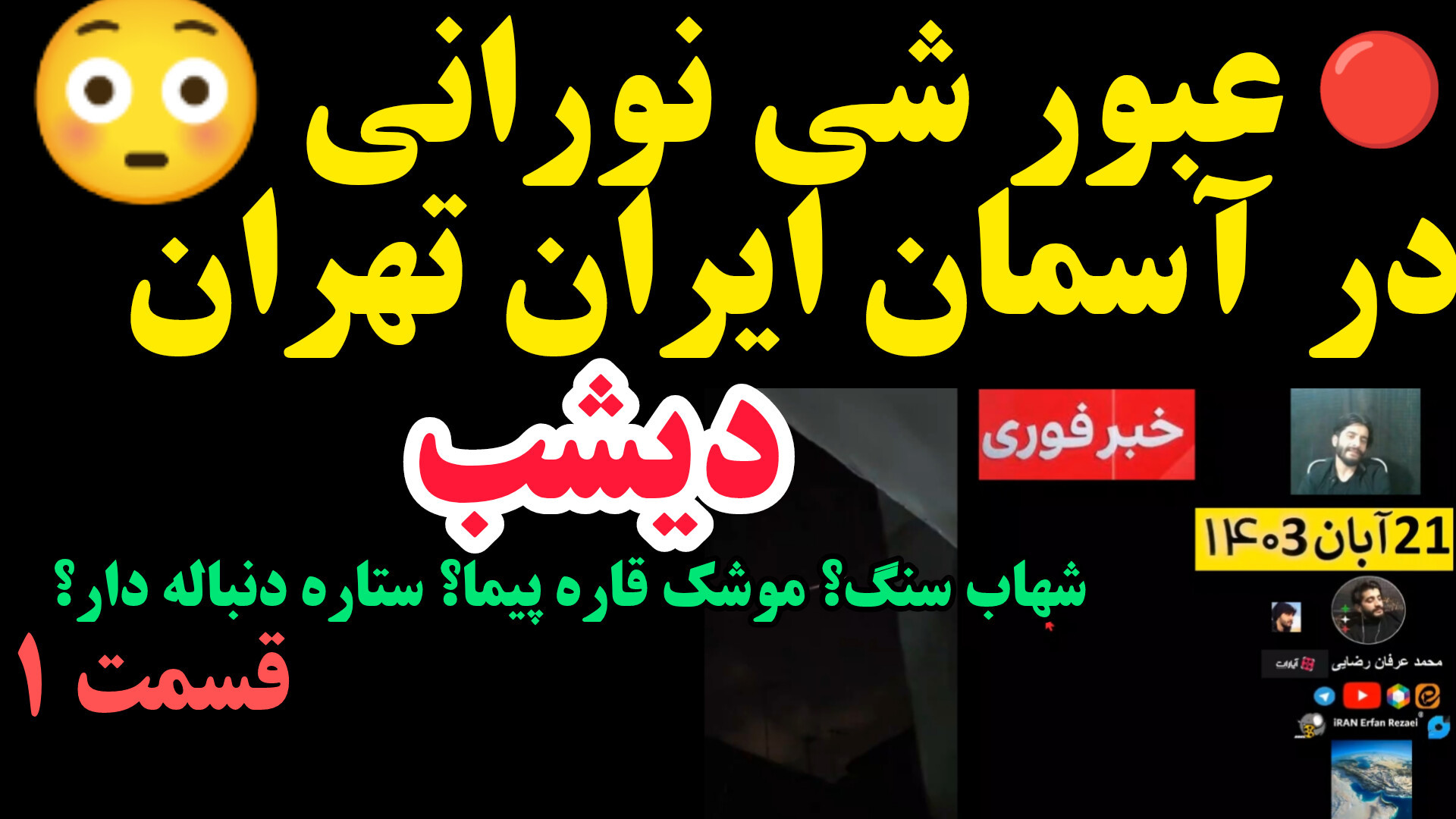 Шаби гузашта дар осмони Эрон, Теҳрон ва Гилон нури аҷиб падидор шуд. Ин нури ғайриоддӣ бисёриҳоро ба ҳайрат овард. Оё ин метавонад мушаки қораи бошад? Барои маълумоти бештар ва тафсилоти пурра, видеои моро тамошо кунед.