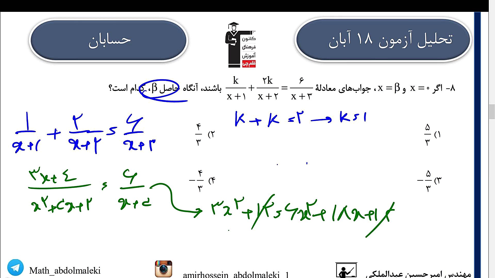 Дар ин видео мо таҳлили пурраи имтиҳони Қаламчии 4 ноябри 1403-ро барои фанни Ҳисобон пешниҳод мекунем. Омода бошед, ки ҳамаи саволҳои душворро бо шарҳҳои муфассал ва роҳнамои осон фаҳмед. Пешниҳодҳои махсус барои беҳтар фаҳмидани матлабҳои асосӣ ва тайёрӣ барои имтиҳонҳои оянда. Ин видео ба шумо кӯмак мекунад, ки дарки амиқ аз мавзӯъҳои мураккабро ба даст оред ва бо боварии бештар дар имтиҳонҳо иштирок кунед.