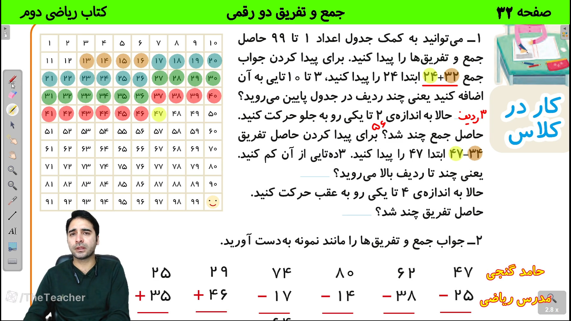 Дар ин видео, мо бо ҳамдигар ба саҳифаи 32 китоби риёзии синфи 2 назар мекунем. Бо Ҳомид Ганҷӣ, омӯзиши ҷамъу тарҳи ададҳои дурақама осон мешавад! Биёед бо ҳамдигар дарсҳои риёзӣ омӯзем ва бо тарзу усулҳои нав шинос шавем.