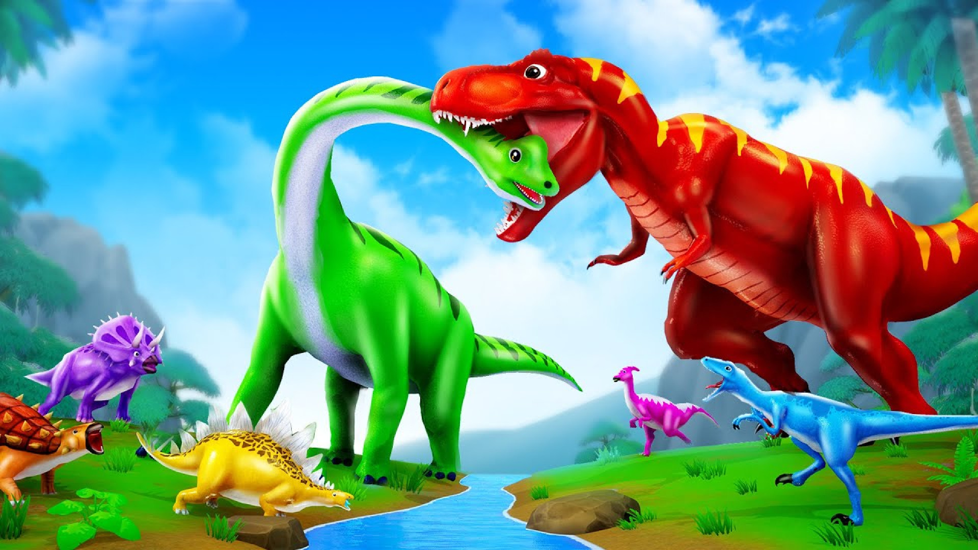 Дар ин видео, шоҳиди ҷанги афсонавии динозаврҳои бузург шавед! Картони ҷолиб ва пур аз ҳаяҷон барои дӯстдорони динозаврҳо. Ба ҷаҳони Ҷурасик ғӯта занед ва аз тамошои ин моҷароҳои ҳаяҷоновар лаззат баред!